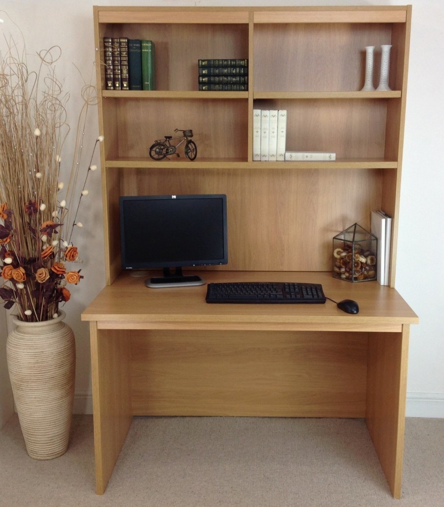 Home Office Furniture UK Computer Table Desk with Shelf Hutch Bookcase Set, Walnut, Wood Grain