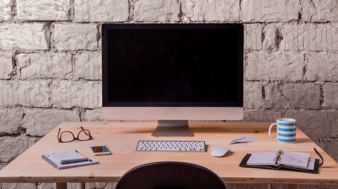 Perspective view of the desk of the corporate office